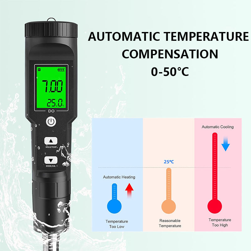 Dissolved oxygen meter a wide 0.0-40.0 mg/L range, exceeding the standard 0.0-20.0 mg/L range. This expanded range caters to a variety of applications.