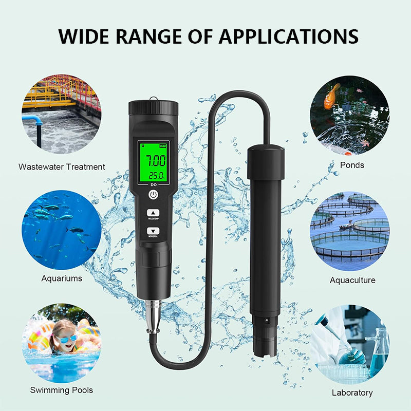 Our Dissolved Oxygen Meter is well-suited for measuring dissolved oxygen levels and temperature in various settings, including aquariums, swimming pools, ponds, aquaculture, research, and more. It consistently delivers precise results across diverse environments.