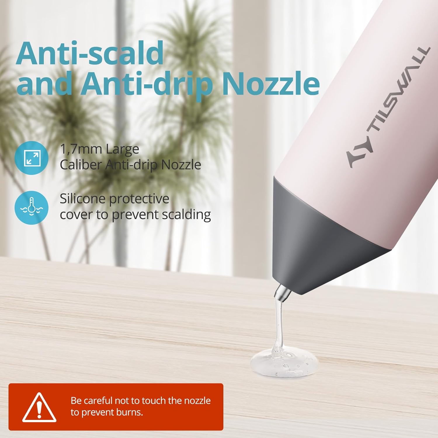 The 1.7mm hot melt glue gun nozzle ensures drip-free control, perfect for delicate crafting, scrapbooking, and holiday decor.
