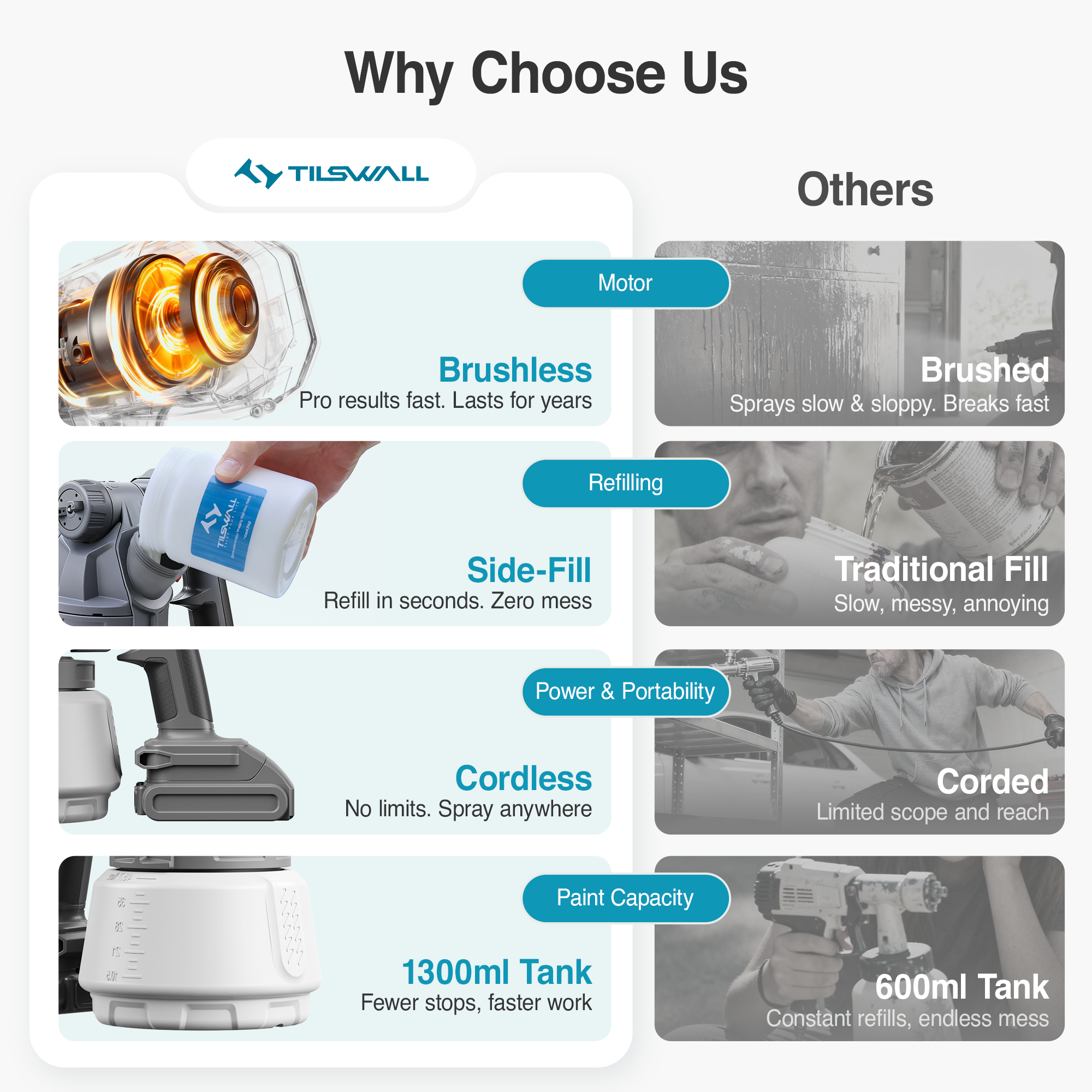 Our innovative side-feed design revolutionizes refills. You can now add paint quickly and cleanly from the side without unscrewing the entire container, maximizing efficiency and minimizing mess.