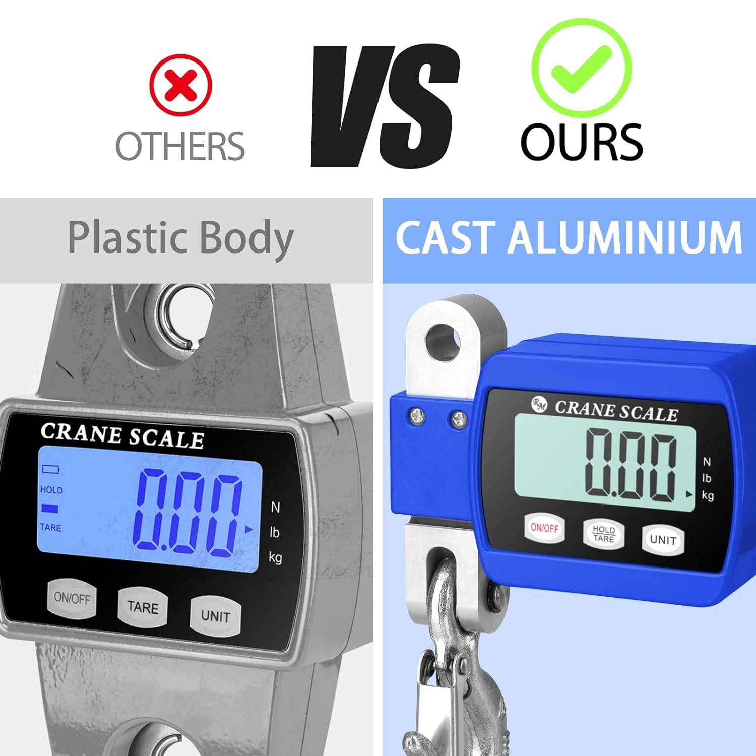 With a staggering 1100lb/500kg (660lb/300kg) capacity, this hanging scale can effortlessly handle the heaviest loads, making it an indispensable tool for industrial operations, farming chores, hunting excursions, and more